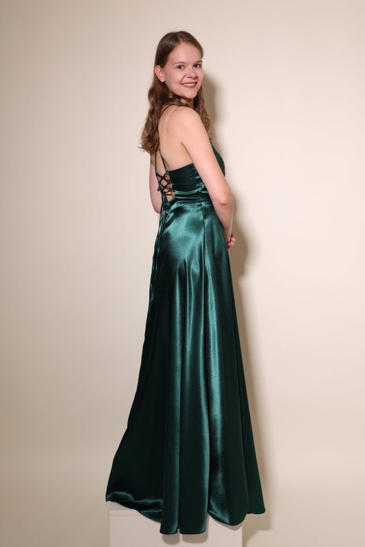 Schnürungen im Rücken für flexible Passform, Beinschlitze für Beweglichkeit, V-Ausschnitt für ein wundervolles Dekolleté, zarte Träger oder Ärmel je nach Wohlgefühl. Rückenfrei wirkt modern – prüf vorher die Unterwäsche-Optionen.