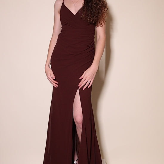 enganliegendes Chiffon Abendkleid mit Schnürung und Schlitz, braun