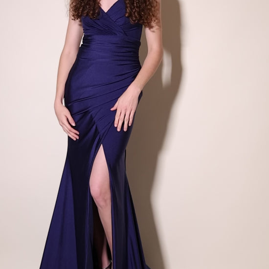 Dieses figurbetonte Ballkleid in Dunkelblau ist die ideale Wahl, um deine Silhouette auf elegante Weise zu betonen. Die Rückenschnürung sorgt für eine individuelle Passform und bietet zusätzlichen Halt. Ein Kleid, das dir bei jedem festlichen Anlass oder Ball eine hervorragende Passform und einen ausdrucksstarken Look verleiht.