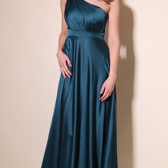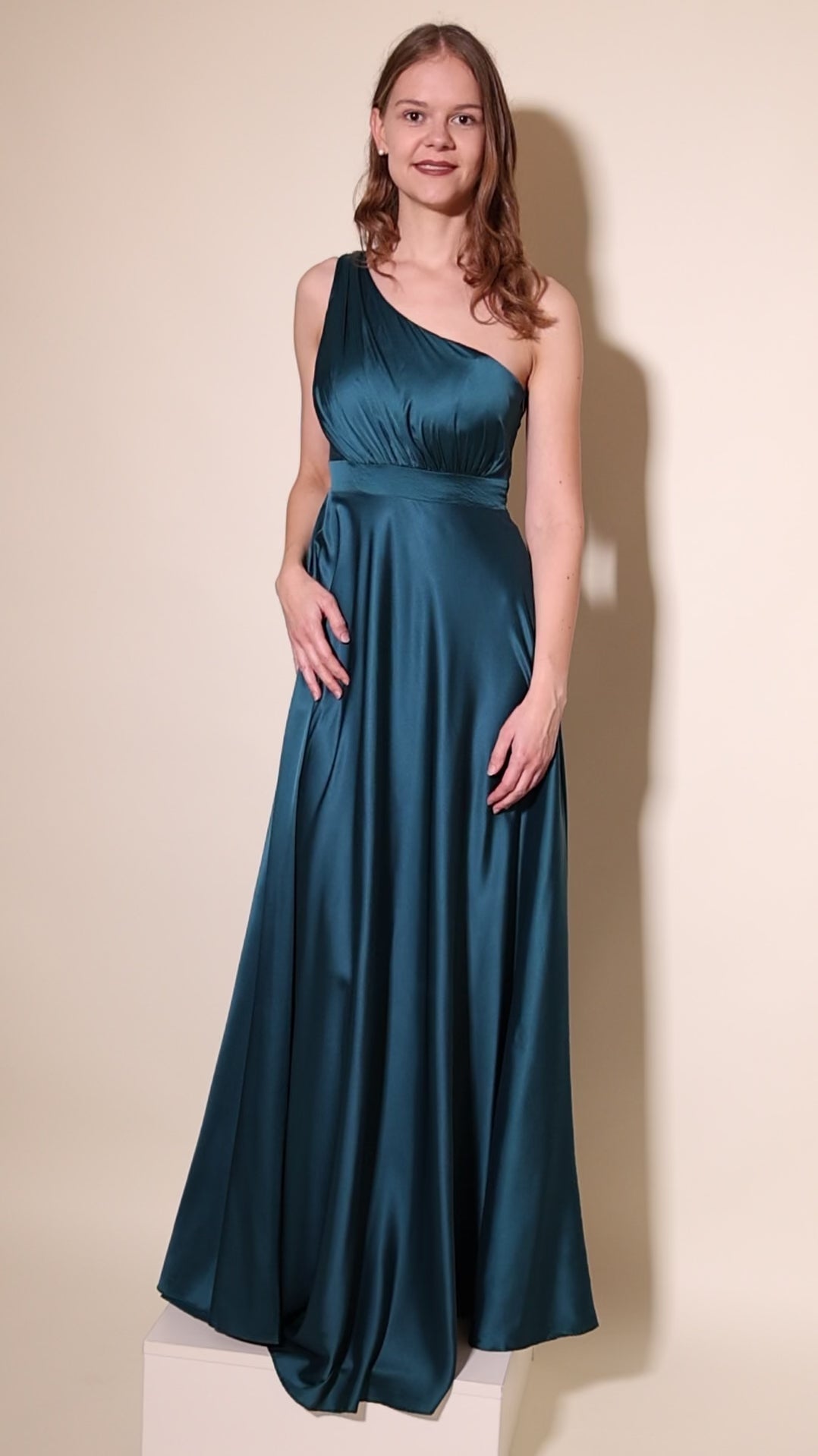 Entdecke das one shoulder Satinkeid mit Raffungen in petrol. Dieses Kleid besticht durch seine sanften Raffungen, die für eine elegante und feminine Silhouette sorgen. Der weich fallende Rock bietet angenehmen Tragekomfort, während der seitliche Reißverschluss ein einfaches An- und Ausziehen ermöglicht. Ideal für besondere Anlässe, kombiniert dieses Kleid Stil und Bequemlichkeit auf perfekte Weise.