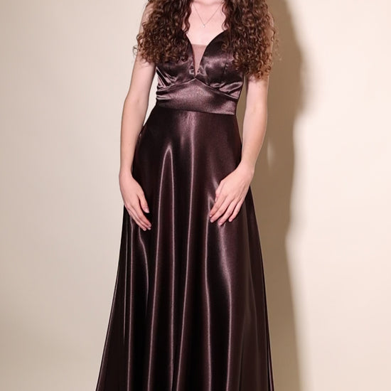 Satinkleid mit tiefem Herzausschnitt & Spaghettiträgern, braun